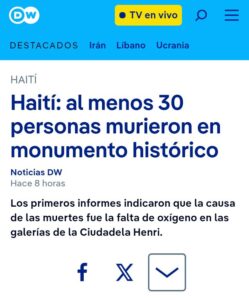 Tragedia en Haití: al menos 30 muertos en la Ciudadela Laferrière por falta de oxígeno