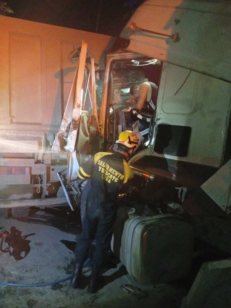 Al percatarse de que el conductor del camión estaba atrapado entre los hierros retorcidos, solicitaron apoyo inmediato a los equipos de rescate y salvamento.