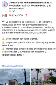 El mensaje oficial hace un llamado a los ciudadanos para que eviten circular por las áreas afectadas y pide que los niños no jueguen en las zonas inundadas.