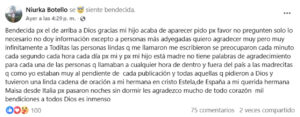 “Bendecida por el de arriba, a Dios gracias, mi hijo acaba de aparecer”, escribió Botello al anunciar que su hijo había regresado.