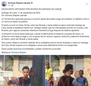“Este suceso refleja el creciente malestar de la ciudadanía ante la ola de arrebatos y robos en Santiago de Cuba, donde la gente se ve obligada a actuar para defenderse frente a la inseguridad”, apuntó el comunicador en su nota.