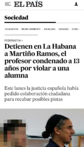 El profesor gallego Martiño Ramos Soto, condenado en España a 13 años y medio de prisión por abusar sexualmente de una alumna, ha sido detenido recientemente por autoridades cubanas. La detención, confirmada por medios como El País , representa un paso clave en la persecución internacional del condenado, pero no elimina las complejidades legales que dificultan su retorno a España.