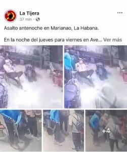 El asalto armado en Marianao con un fusil, que ha generado alarma entre los residentes locales. La víctima, un hombre que trabaja como mensajero, sufrió un aumento de la presión arterial debido al estrés del asalto, ya que padece de hipertensión. Afortunadamente, no se reportaron heridos durante el robo, según información publicada en el perfil de Facebook La Tijera.