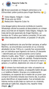 Home ActualidadCubaBrutal asesinato en Holguín conmociona a la comunidad: reclaman justicia para Ángel Ramírez