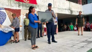 Durante la entrega de los televisores en la propia escuela, oficiales explicaron cómo se realizó la operación que permitió recuperar la “herramienta de aprendizaje” de los niños.