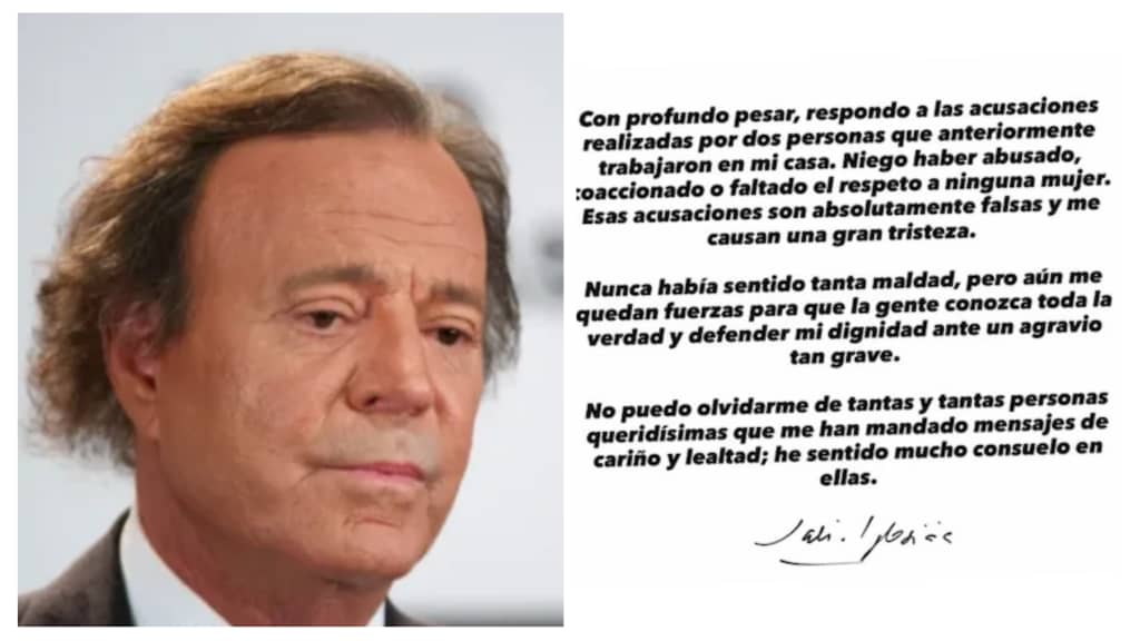 Según detalla Infobae, ante la creciente polémica, Julio Iglesias decidió emitir un comunicado en su cuenta oficial de Instagram, donde cuenta con más de 600 mil seguidores. En el texto, publicado la madrugada de este viernes 16 de enero, el intérprete niega rotundamente todas las acusaciones en su contra.