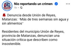 Mientras tanto, el temor a posibles represalias mantiene a muchos en silencio, aunque el malestar social continúa creciendo. La situación en Unión de Reyes refleja el deterioro sostenido de las condiciones de vida en varias zonas de Matanzas, donde las carencias de servicios esenciales se vuelven cada día más graves.