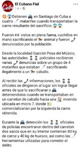 Detienen a cuatro personas en Santiago de Cuba por sacrificio ilegal de un caballo