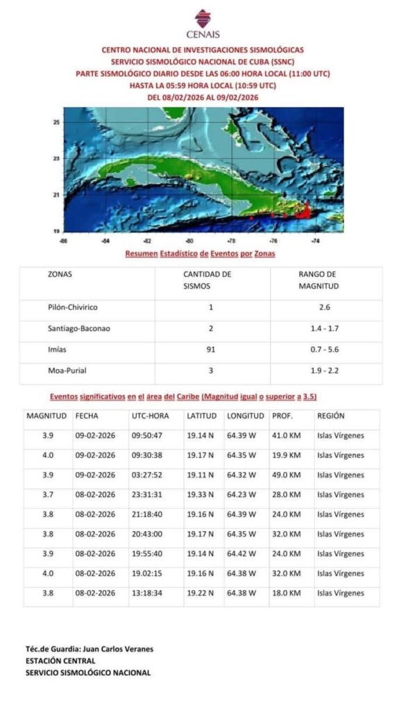 El sismo principal, sentido en las cercanías de Imías (Guantánamo), generó 90 réplicas hasta las 5:59 a.m., de las cuales 9 alcanzaron magnitudes entre 3.7 y 4.0. Las autoridades sismológicas observan una tendencia a la baja en la frecuencia e intensidad de estas réplicas, lo que reduce el riesgo inmediato de eventos mayores.
