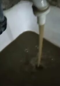 Según los reportes, el agua que sale de los grifos presenta coloración oscura, suciedad visible y mal olor, características que, según los propios residentes, la hacen inutilizable para el consumo diario.