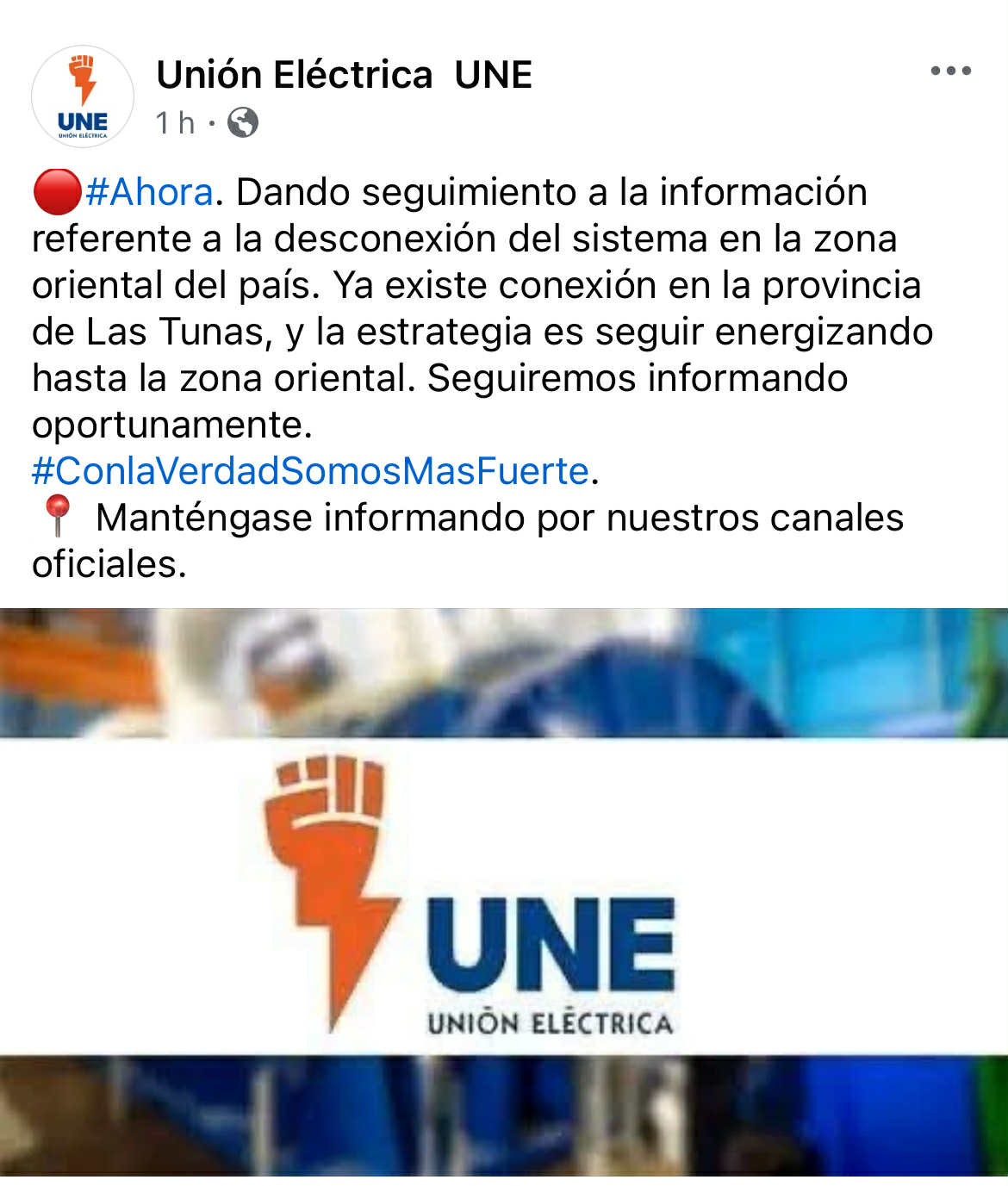 La Unión Eléctrica (UNE) comunicó que se investigan las causas del evento y que ya se logró recuperar el servicio en parte de la provincia de Las Tunas. La estrategia declarada es seguir reenergizando gradualmente el resto de la región. Sin embargo, el comunicado oficial vuelve a quedarse en la superficie: no explica por qué una sola avería provoca un colapso de semejante magnitud, ni ofrece detalles técnicos sobre la real fragilidad del sistema.