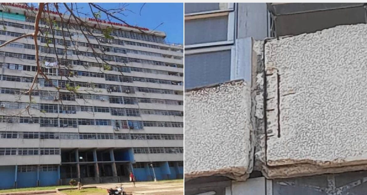 En el reparto Peñas Altas de Matanzas, un pedazo de concreto se desprendió de la fachada de un edificio de 13 plantas, poniendo en riesgo a los peatones que transitaban por la zona.
