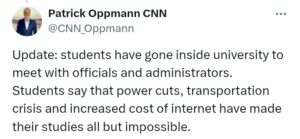 Según testimonios difundidos en redes sociales y citados por activistas, muchos jóvenes consideran que estudiar en estas condiciones resulta prácticamente imposible, ya que la falta de electricidad limita el acceso a internet y dificulta la participación en las actividades académicas virtuales.