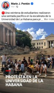 Horas después de iniciarse la protesta, los estudiantes decidieron entrar al campus universitario para dialogar directamente con funcionarios y administradores de la institución segun público en la Red Social X un corresponsal en Cuba de la agencia CNN.