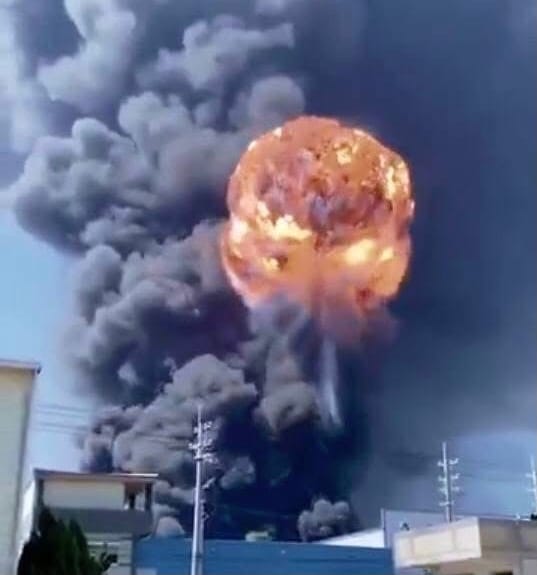 El estallido generó una impresionante columna de humo negro y anaranjado que se elevó varios cientos de metros, y la onda expansiva rompió ventanas en edificios a más de dos kilómetros de distancia.
