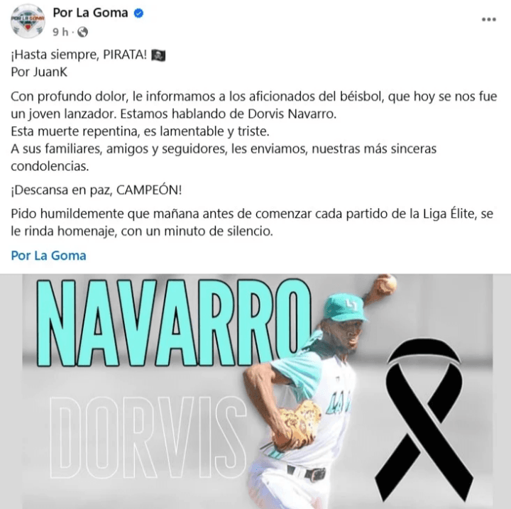 “Un pirata se nos ha marchado. Hace minutos nos enteramos de una lamentable noticia, pues el fallecimiento de un joven lanzador (24 años) pinero, Dorvis Navarro. Vuela alto, muchacho. Desde nuestra página le enviamos nuestras más sinceras condolencias a familiares, amigos y seguidores. Hoy el béisbol cubano se viste de luto”.