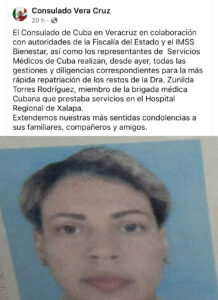 Tras conocerse el fallecimiento, la Embajada de Cuba en México, junto con el Consulado cubano en Veracruz, ha activado todos los protocolos consulares necesarios para la repatriación de los restos de la Dra. Torres Rodríguez.