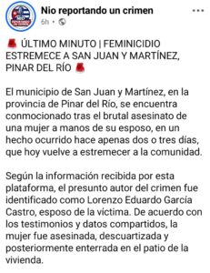 Este crimen reabre el debate sobre la urgencia de políticas efectivas para prevenir la violencia de género en Cuba, donde los reportes de feminicidios han ido en aumento según diversas plataformas independientes y organizaciones feministas.