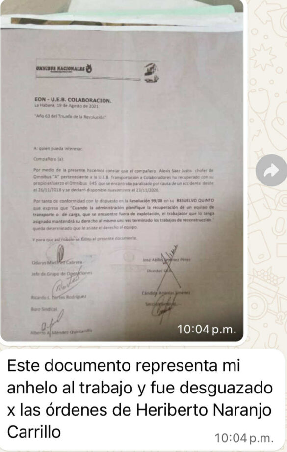InfoFlashMundo agradece la confianza de Alexis Antonio Sáez Justiz, quien se comunicó directamente con nuestra redacción para hacer pública esta denuncia. Nos comprometemos a dar seguimiento a este caso y a cualquier documentación adicional que pueda aportar, en busca de transparencia y justicia para los trabajadores del transporte en Cuba.