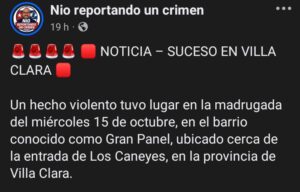 En la madrugada del miércoles 15 de octubre, un hecho violento sacudió la tranquilidad del barrio Gran Panel, ubicado cerca de la entrada de Los Caneyes, en la provincia cubana de Villa Clara.