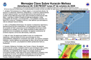 AVISO DE CICLÓN TROPICAL No. 16 – HURACÁN MELISSA