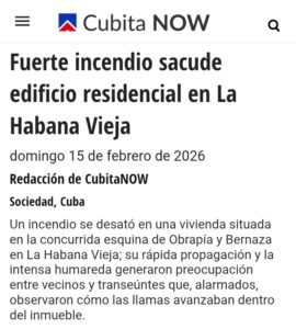 Un incendio se registró en horas recientes en una vivienda ubicada en la concurrida esquina de Obrapía y Bernaza, en el corazón de La Habana Vieja. De acuerdo a los medios independientes CubitaNOW y La Tijera, la rápida propagación de las llamas y una intensa columna de humo generaron momentos de tensión entre vecinos y transeúntes que fueron testigos del avance del fuego dentro del inmueble.