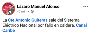 Home ActualidadCubaLa Guiteras se apaga y arrastra con ella al sistema eléctrico cubano.