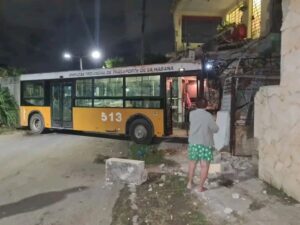 Un ómnibus articulado perteneciente a la Empresa Provincial de Transporte de La Habana impactó contra una vivienda biplanta en la Avenida Santa Amalia durante la madrugada de este lunes, en un accidente que generó importantes daños materiales y alarma entre los vecinos, aunque no se reportaron personas lesionadas, de acuerdo con información preliminar.