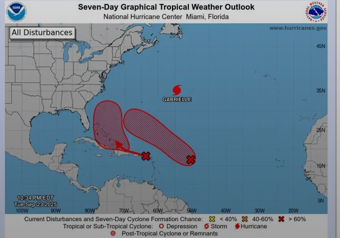 El NHC también monitorea una segunda onda tropical activa en el Atlántico, que muestra elevado potencial de desarrollo, aunque por ahora no parece estar en una ruta que la lleve directamente hacia Cuba. En caso de que ambas perturbaciones llegaran a transformarse en tormentas tropicales, según la lista oficial de la temporada ciclónica 2025, la primera recibiría el nombre de Humberto y la segunda Imelda.