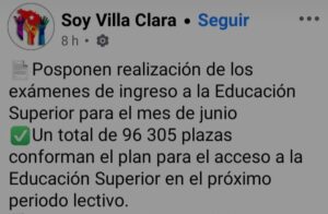 El Ministerio de Educación Superior anunció la reprogramación de los exámenes de ingreso a la Educación Superior en Cuba, que ahora se realizarán durante el mes de junio. De acuerdo al nuevo cronograma divulgado por los medios oficialistas Portal del Ciudadano Soy Villa Clara y Juventud Rebelde, la prueba de Matemática se efectuará el viernes 5 de junio, la de Español el martes 9, y la de Historia de Cuba el viernes 12.