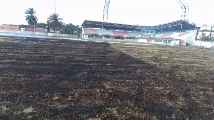 Queman la hierba del estadio Genaro Melero de Jatibonico y terminan dañando el césped