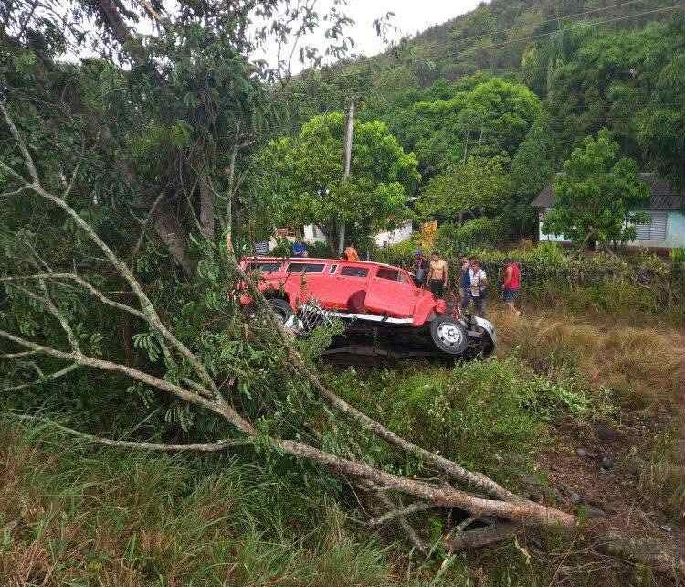 Un accidente de tránsito ocurrido en la tarde de este martes en las cercanías de Arroyo Blanco-Los Coco, municipio de Mayarí, dejó siete personas lesionadas y activó de inmediato el sistema de urgencias médicas del territorio. Según las primeras investigaciones de la Policía Nacional Revolucionaria, el siniestro se produjo cuando una camioneta particular, color rojo y que prestaba servicio en la ruta Holguín-Moa, salió de la carretera y, al intentar reincorporarse al pavimento mojado por una ligera lluvia, el conductor perdió el control y el vehículo volcó, impactando contra un árbol.
