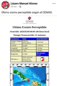 Un sismo de magnitud 5.6 en la escala de Richter fue registrado a las 7:00 a.m. (hora local de Cuba) de este domingo 8 de febrero de 2026, con epicentro al sureste del municipio de Imías, en la provincia de Guantánamo, según datos preliminares del Centro Nacional de Investigaciones Sismológicas (CENAIS).