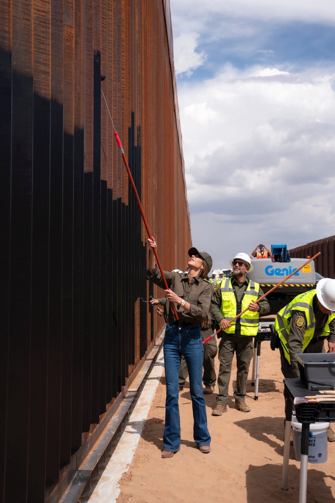 “Es tanto un escudo como un símbolo”, declaró Noem, subrayando que el muro no solo tiene una función práctica, sino también política.