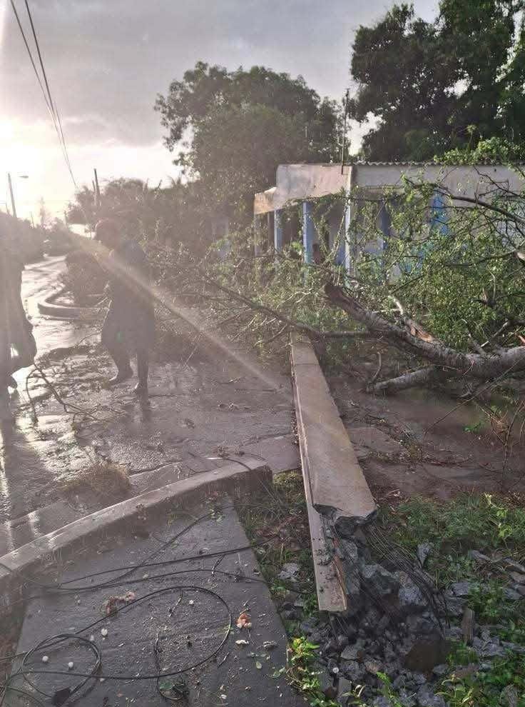 Estos fenómenos provocaron daños en la infraestructura local, incluyendo afectaciones en un poste eléctrico de hormigón, líneas eléctricas y telefónicas, así como la caída de ramas y un árbol que dañó un cuarto de desahogo en una vivienda. Las autoridades municipales, junto con equipos de la Empresa Eléctrica y Etecsa, se encuentran trabajando en la solución de estas afectaciones y en el restablecimiento del sistema eléctrico y de las comunicaciones.