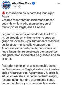 La tranquilidad del municipio de Regla, en La Habana, se vio interrumpida en la madrugada de hoy por un lamentable hecho violento que mantiene preocupados a los residentes de la zona.